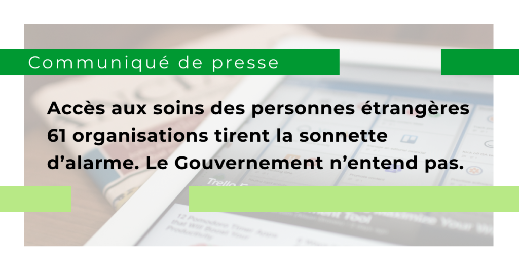 COMMUNIQUÉ DE PRESSE Accès aux soins des personnes étrangères vulnérables : 61 organisations tirent la sonnette d’alarme. Le Gouvernement n’entend pas.