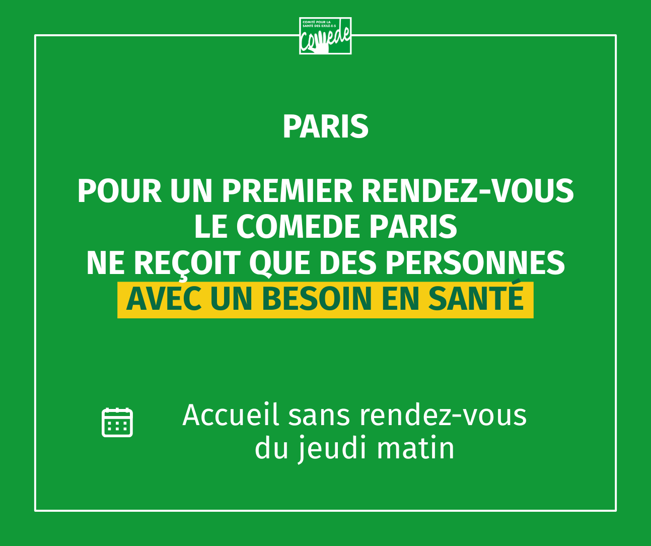 Le Comede Paris reçoit sans rendez-vous, le jeudi matin