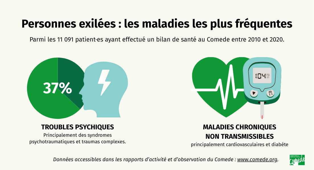 Retrouvez ici, sous formes d’infographies, des informations-clés et autres données thématiques en lien avec la santé et les droits des personnes exilées.